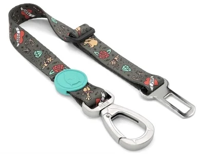 Dit is een band die je aan de gordelsluiting in je auto klikt en aan het tuig of de halsband van je hond bevestigt.
